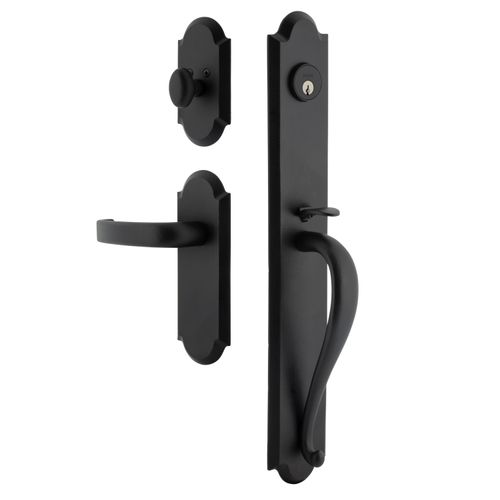 Inspired by ancient architectural forms, the Dome One-Piece Handleset features gracefully arched top and bottom contours that evoke a sense of enduring elegance. The substantial A-Grip provides a comfortable hold and timeless appeal, making it a distinguished choice for stately entryways. The powder coated matte black finish provides superior resistance to the elements, making it ideal for use in any environment. Each Ageless Iron product has been tested extensively in Florida exposure for UV resistance and anti-corrosion.