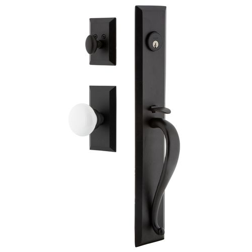 Ageless Iron Keep Vale Plate Handleset With A-Grip And White Snow Knob