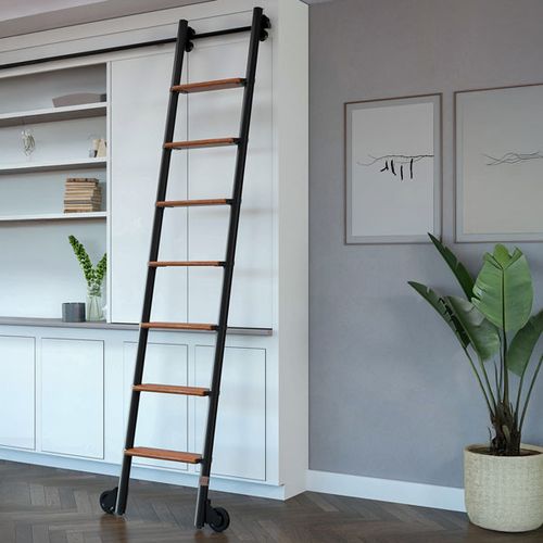 Introducing a modern sophistication in a rolling ladder system. With its sleek design and patented wheel braking system, Alta combines form and function like never before. Alta inspires simplicity with contemporary lines, while providing strength, convenience, and safety. Explore the seamless integration of minimalist aesthetics and innovative engineering. Experience the future of decorative rolling ladders with Alta.