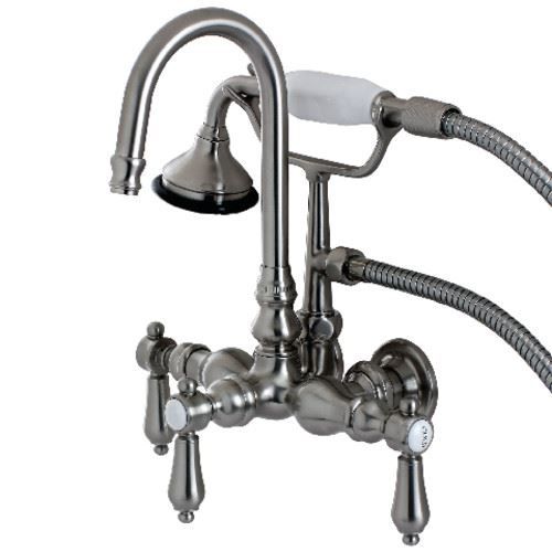 Wall mount clawfoot tub faucets are the perfect fixture to add decorative flair within your bathroom because of their unique architectural elements. With vintage opulence, this will complete your refined bathroom decorum with the help of its premium finish and traditionally styled handheld shower. The solid brass construction also makes for a heavy, quality made product.