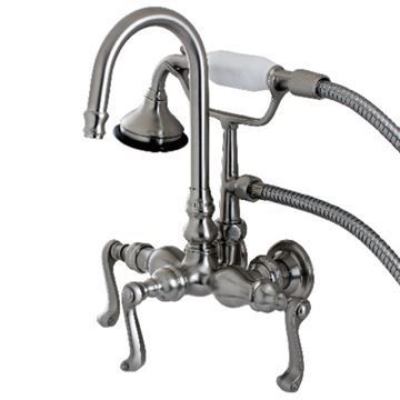 Wall mount clawfoot tub faucets are the perfect fixture to add decorative flair within your bathroom because of their unique architectural elements. With vintage opulence, this will complete your refined bathroom decorum with the help of its premium finish and traditionally styled handheld shower. The solid brass construction also makes for a heavy, quality made product.