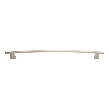 Atlas Homewares Fulcrum Pull resembles a small fulcrum with a thin, slightly arched bar on pyramid-shaped posts. Available in six finishes. 13-in. long.