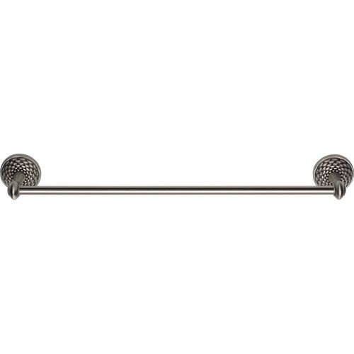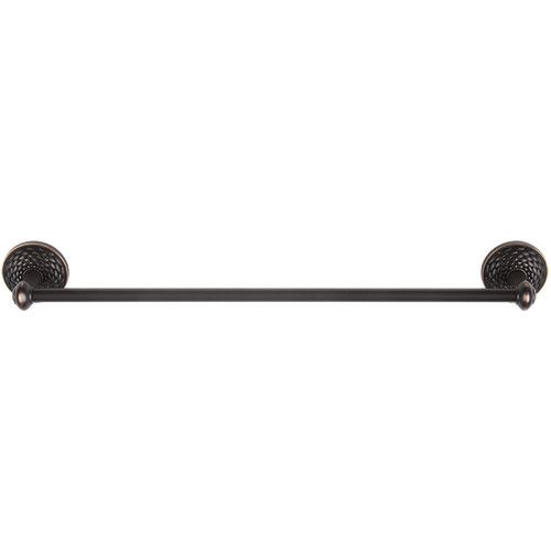 An eye-catching textured design on the round rosettes give a distinctive and high end look on this Atlas Homewares Mandalay Bath Towel Bar. Choice of 18- or 24-inch lengths in Brushed Nickel and Venetian Bronze finishes. Brass and Zin