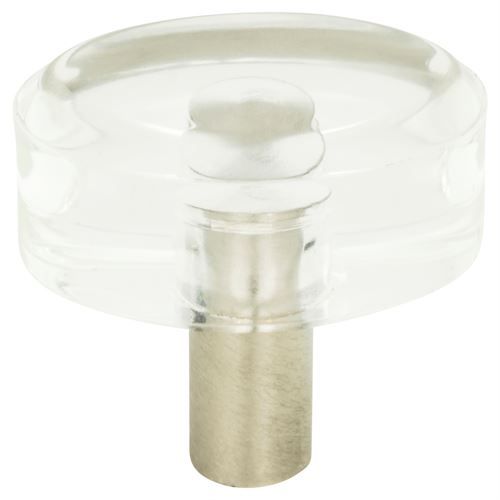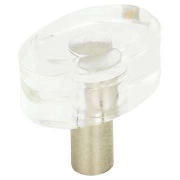 Glass and Brass combine for a stunning look in the Atlas Homewares Optimism Oval Knob. The round glass top is supported by a round Brass post in Brushed Nickel or Brushed Chrome.