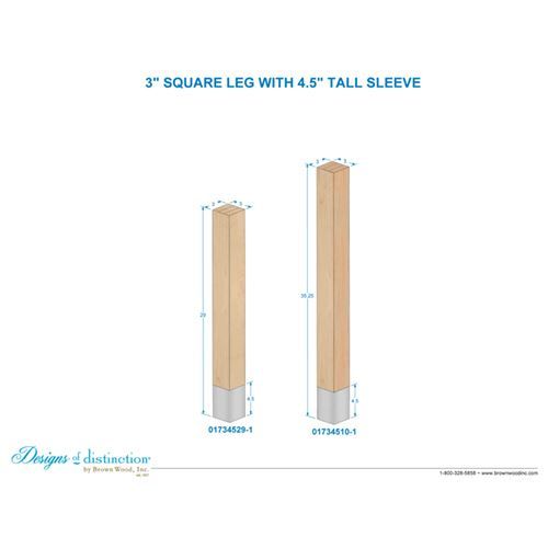 The Designs of Distinction 3" x 29" Square Leg - Tall Warm Bronze Sleeve adds an elegant look to any décor. The 4 1/2-inch metal sleeves protect the leg against dings and dents and add a stylish accent. These square furniture legs with metal sleeves are at home in contemporary, urban, industrial, and other design styles. Choice of North American hardwoods: Alder, Cherry, Hard Maple, Red Oak, Walnut and White Oak. Sanded and ready to paint or stain.