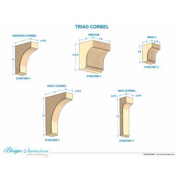You will find many uses in your home for the Designs Of Distinction 5 1/2 Inch Triad Corbel. Great for shelving or as part of decorative molding. Choice of Alder, Paint Grade, Read Oak, Hard Maple, Cherry, White Oak, and Walnut. We carry a large selection of both simple and ornate corbels in many sizes.