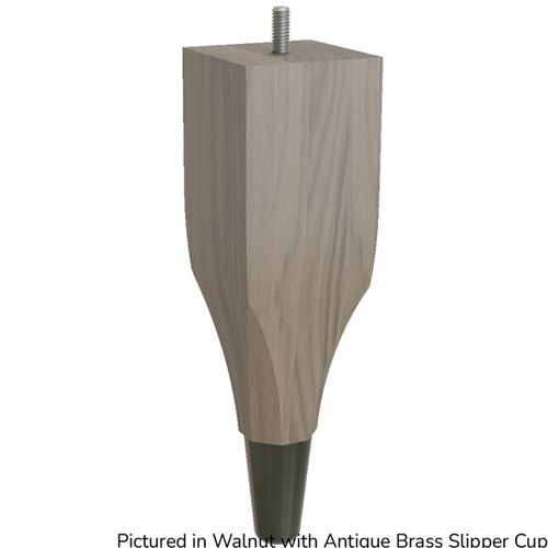 Modern trends have utilized mixed materials more and more often. These new tapered feet with brass slipper cups can give you that style on your favorite furniture or fixture. The feet are made in the USA with real North American hardwoods; the slipper cups are made from real brass and given a premium finish. They're available in three wood species and four finish options. They're easy to assemble with included hardware and even easier to install with a pre-attached hanger bolt at the top. Felt pads are not included.