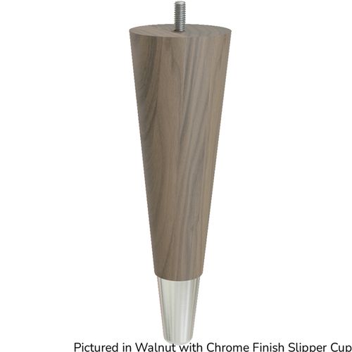 Modern trends have utilized mixed materials more and more often. These new tapered feet with brass slipper cups can give you that style on your favorite furniture or fixture. The feet are made in the USA with real North American hardwoods; the slipper cups are made from real brass and given a premium finish. They're available in three wood species and four finish options. They're easy to assemble with included hardware and even easier to install with a pre-attached hanger bolt at the top. Felt pads are not included.