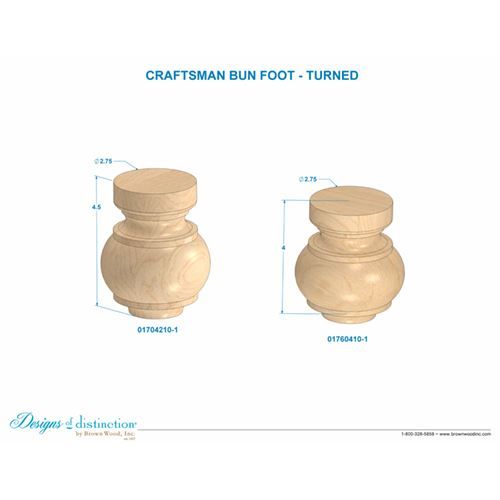 Complete your furniture project with this jug-shaped Craftsman Bun Foot by Designs of Distinction. Bun is 4 /2" tall x 3 5/8" in diameter and comes in five choices of wood - Cherry, Red Oak, Alder, Hard Maple and Paint Grade.