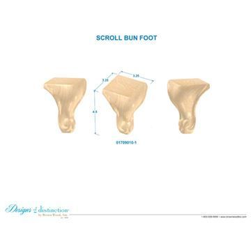 Designs Of Distinction Scroll Round Corner Bun Foot features a classic scroll design that will give your furniture a sophisticated look. Available in four wood choices.and unfinished.