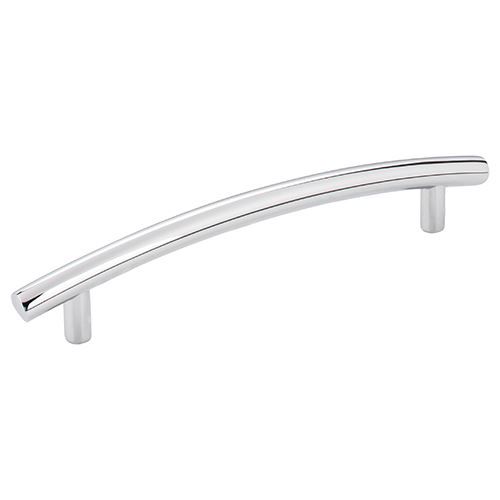 Elements Belfast Bar Cabinet Pull features a curved, round bar design that gives an industrial vibe. Made of Zinc, this handsome pull is offered in Polished Chrome. 128MM boring, 6 9/16" long. Projects 1 1/4".