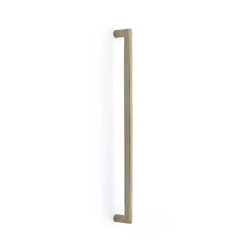 This collection of Sandcast Bronze is made of a metal alloy that consists mostly of copper and is made to patina over time, creating a "living" finish that showcases exposure and wear patterns for a unique appearance. The Bronze Age, a historic period between 3300 BC and 1200 BC, was significant for its use of this material. Elevate your cabinetry with the unique aesthetic of the Appliance Pull, a perfect blend of craftsmanship and modern appeal.