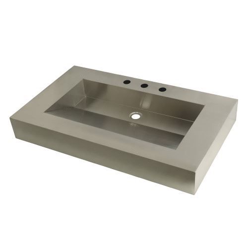 Fauceture Commercial Stainless Steel Bathroom Wash Basin 22 x 37 Inch is a rectangular basin top made of stainless steel. The Kingston Commercial collection brings forth bold design and smooth lines, enhancing your contemporarily styled home. Heavy, durable, and beautiful, this vanity top will give your bathroom a sleek, modern design. With a rust-resistant brushed finish, stainless steel is also resistant to scratches for a long-lasting, durable product. Pair these tops with vanity sink bases from the Kingston Commercial Collection.