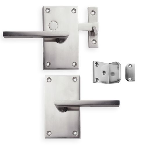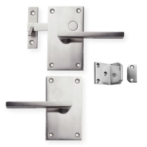 • Includes: 1 Active Latch & Lever, 1 Dummy Plate & Lever, 1 Surface Catch, 1 Mortise Catch, 1 Gate Stop, 1 Spindle