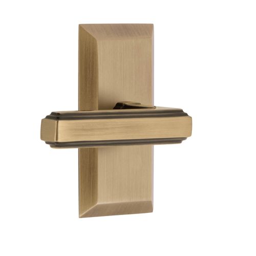 Classic and crisp, the Fifth Avenue Short Plate on the Grandeur Fifth Avenue Concealed Screw Dummy Interior Set - Carre Lever strikes the perfect balance between long plates and rosettes. The addition of the Carre Lever, with its architectural stepped edges, creates a stately combination. This is a Dummy set no latches are included. Choose from Antique Pewter, Bright Chrome, Lifetime Brass, Polished Nickel, Satin Brass, Satin Nickel, Timeless Bronze, or Vintage Brass finishes. Available in Single Dummy (left- or right-hand levers) or Double Dummy (universal handing).
