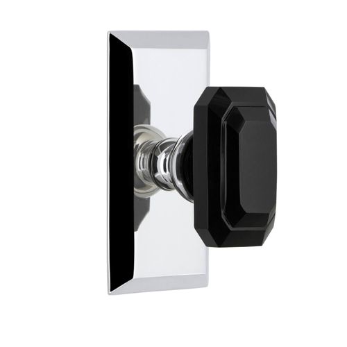 Grandeur Fifth Avenue Concealed Screw Interior Set - Baguette Black showcases the intriguing beauty of the Black Baguette Knob with a simple Fifth Avenue plate. Choose from Antique Pewter, Bright Chrome, Lifetime Brass, Polished Nickel, Satin Brass, Satin Nickel, Timeless Bronze, or Vintage Brass finishes. Available in 2 3/8" or 2 3/4" backsets in Passage, Privacy, Single Dummy, or Double Dummy functions. Universal handing.