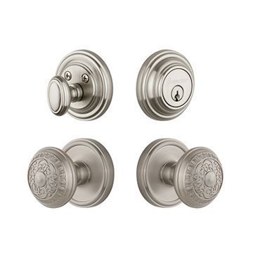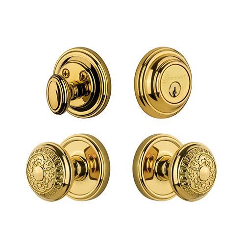 The Grandeur Georgetown Single Cylinder Entry Set with Windsor Knob has a stately look with the beautifully detailed Windsor knob. Made of solid forged brass (not plated). Available in five beautiful and classic metal finishes to coordinate with any design.