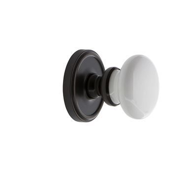 Porcelain door knobs bring a nostalgic and vintage look to any home. The Hyde Park Knob is the focal point for this Georgetown Double Single Dummy Interior Door Set. A classic round solid brass back plate with raised rim completes the classic look in choice of seven finishes.