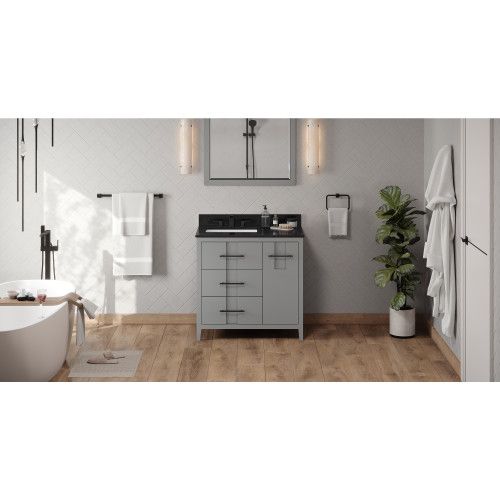 Jeffery Alexander Grey Katara Single Vanity with Black Granite Top