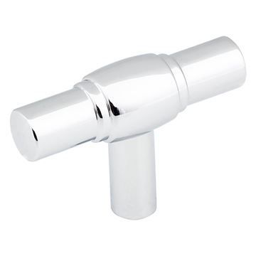 Jeffrey Alexander Hayworth Cabinet T Knob combines an industrial look with a clean design for an elegant feel that is simple, yet trendy. The T-Knob design knob is made of a durable Zinc alloy and offered in Satin Nickel, Polished Chrome, and Polished Nickel. 2" long.
