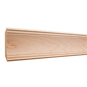 The Legacy Heritage 4 1/4 Inch Cove Crown Molding adds depth and dimension to a room and features a curved profile with stepped edges. This wide, solid wood crown molding is offered in Alder, Cherry, Hard Maple, and Poplar and shipped unfinished.