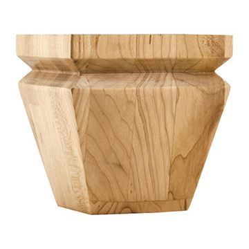 The Legacy Heritage Square Tapered Bun Foot with Groove is a solid wood furniture leg with squared sides and tapered profile with notched top. The 4-inch Traditional bun foot will complement any design style. Choice of Alder, Hard Maple, or Rubberwood.