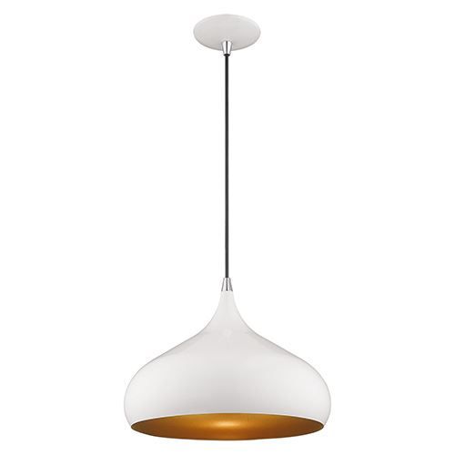 Livex Lighting 13 3/4 Inch Metal Shade Mini Pendant comes in a chic shiny white finish shade and features a modern gold finish inside. Perfect for A modern, minimalist look.