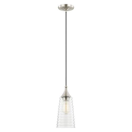 Clear ribbed glass creates this simple retro style pendant light. The ribbed glass refracts the light source creating a softer look to the nostalgic bulb. Choose from Brushed Nickel or English Bronze finishes.
