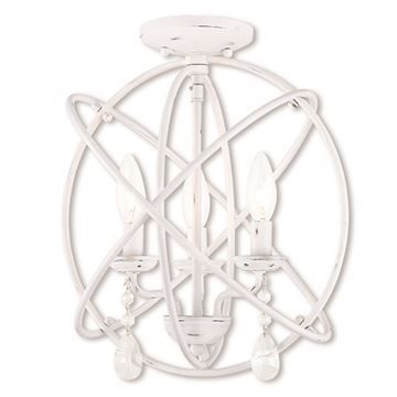 Delicate crystals add a luxurious counterpoint to this Livex Lighting Aria Large Convert Mini Chandelier/Ceiling Mount Light. The three arm cluster nestled within orbiting rings feLivex Lighting Aria Large Convert Mini Chandelier/Ceiling Mount Lightatures teardrop crystals. Use a couple of these fixtures over your kitchen island or convert this to a ceiling mount for your hallway or bathroom. Choose from Antique White, Brushed Nickel, English Bronze, or Polished Nickel finishes.