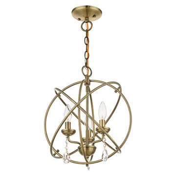 The delicate dangling crystals of the Livex Lighting Aria Large Convertible Chandelier/Semi Flush Light add an eclectic counterpoint to the luxurious orb. The three-arm light cluster nestled within orbiting rings features faceted clear teardrop crystals. Use multiples of these fixtures over your kitchen island, in the dining room, or convert this to a semi flush mount for your hallway or bathroom. With its easy installation and low upkeep requirements, this light will not disappoint. Choose from Antique Brass, Black, or Bronze finishes.