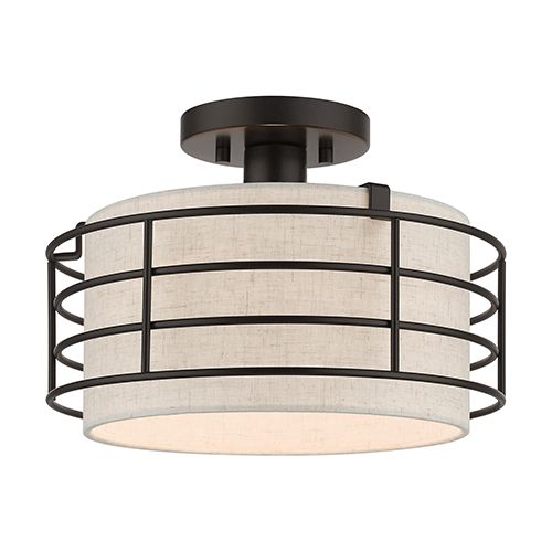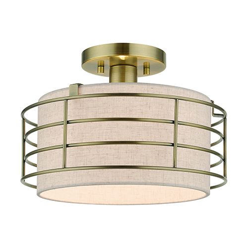 Elevate your interior with the Livex Blanchard Medium Semi-Flush Ceiling Light. This stunning fixture effortlessly combines refined style with a touch of intrigue, making it a perfect addition to your decor. The carefully crafted oatmeal hardback shade, paired with the elegant finish, bathes your space in a warm, inviting glow, highlighting the intricate fretwork pattern for a captivating ambiance.