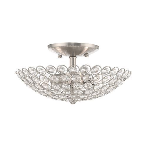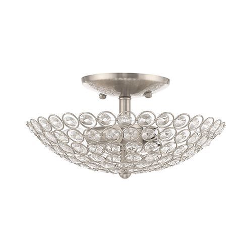 The Livex Lighting Cassandra 11 Inch Ceiling Light features a dazzling array of glass crystals suspended within a modern frame. Light artfully reflects and refracts through these elements to provide a dramatic focal point to any room. Available in Brushed Nickel.