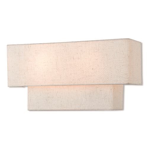 The double hand crafted off-white fabric hardback shade gives Livex Lighting Claremont 16 Inch Oatmeal Wall Sconce a clean look. Available in English Bronze. The sleek style and simple design of this wall sconce make it easy to use in any space.
