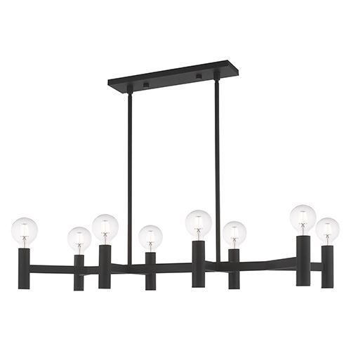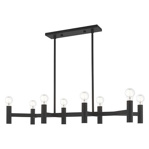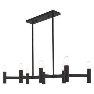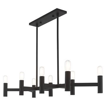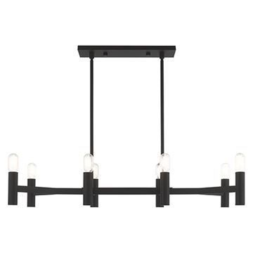Create an eclectic look perfect for mid-century modern or transitional spaces with Livex Lighting Copenhagen Linear Chandelier. The metal frame features exposed bulb sockets. Choose from Black, Brushed Nickel, or Satin Brass finishes.