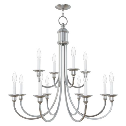 Beautiful squared arms in a Brushed Nickel finish give this Cranford chandelier a transitional update to a traditional look.