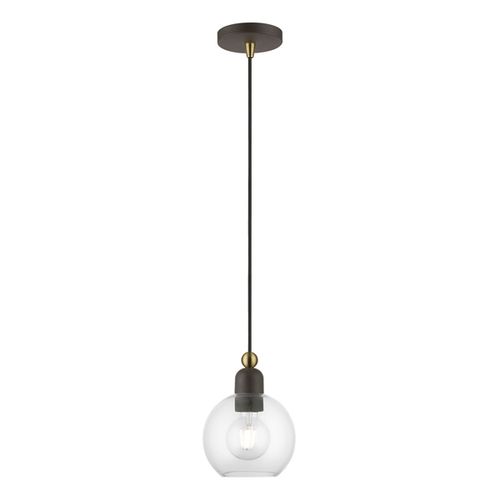 Bring a refined lighting style to your interior with this downtown collection single light mini pendant that features clear sphere glass. Choose from Black, Bronze, Brushed Nickel, or Satin Brass finishes.
