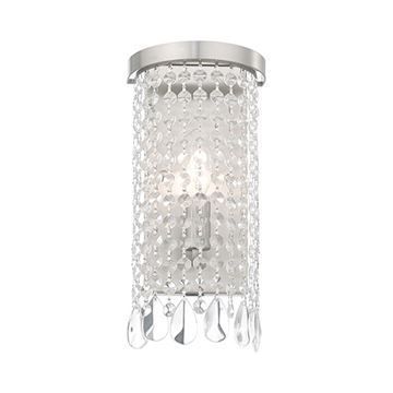 The Brushed Nickel finish decorates the beautiful design of the ELivex Lighting Elizabeth Wall Sconce with a refined quality. Clear crystal frills offer detailed elegance to the design of this wall sconce. Attract attention with the bold personality provided by this lovely fixture.