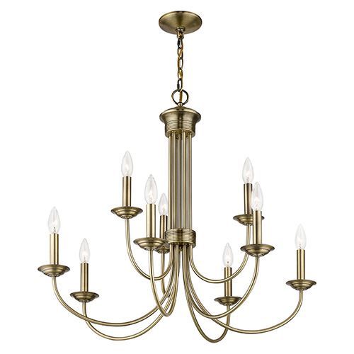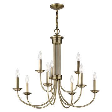 The Livex Lighting Estate Large Chandelier is perfectly suitable above a dining room or a kitchen table with traditional or transitional interiors. Choose from Antique Brass, Black, or Bronze finishes.