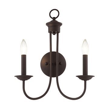 The Livex Lighting Estate Large Wall Sconce features two hook-shaped arms holding candle-like lights. This Bronze finish double sconce is perfectly suitable in a dining room, bedroom or vanity with traditional or transitional interiors.