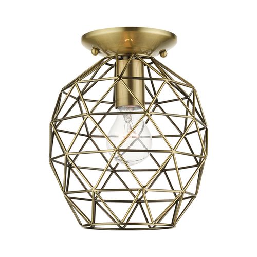 The Geometrix collection adds a stylish touch of contemporary inspiration featuring a classic geometric cage design. This single-light flush mount will fit comfortably almost into any room decor. With superb craftsmanship and affordable price, this fixture is sure to tastefully enhance your lifestyle. Choose from Antique Brass, Black, Bronze, or Brushed Nickel finishes.