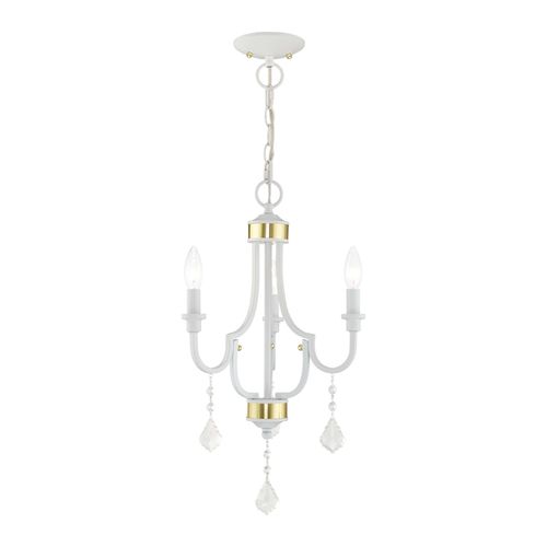 Bring simple, yet elegant, charm to your living space with this beautiful transitional three light mini chandelier. The clear crystals on the mini chandelier provide a understated clean look, that's perfect for any room in your home. Choose from Antique Brass, Polished Brass, or White finishes.