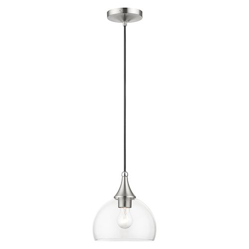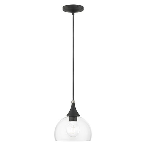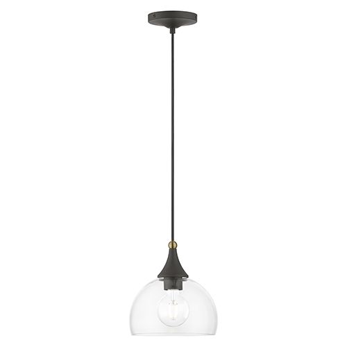 The Livex Lighting Glendon Glass Pendant exudes understated elegance with its minimalist design, showcasing clear curved glass and a premium finish that effortlessly complements any decor. Available in Antique Brass with Polished Chrome, Black with Brushed Nickel, Bronze with Antique Brass, or Brushed Nickel with Polished Chrome finishes, this single pendant makes a versatile and stylish addition to your space. Its hand-blown clear glass shade measures 8 1/4" in diameter and 5 3/4" in height, accommodating one medium base bulb with a maximum wattage of 60. Illuminate your space with this chic pendant that combines simplicity and sophistication.
