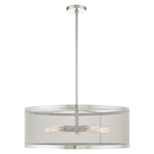 The Industro collection has a clean, crisp look and contemporary appeal. This seven-light pendant chandelier has a sleek stainless steel mesh shade. Will adapt well in the living room, dining room and bedroom tastefully elevating your style. Choose from Black or Brushed Nickel finishes.
