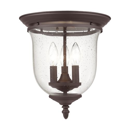 The Legacy collection offers a chic update to traditional style lighting. This flush mount light design comes in a beautiful finish with a traditional seeded glass bell jar adding style. Choose from Antique Brass, Black, Bronze, Brushed Nickel, or Polished Brass finishes.