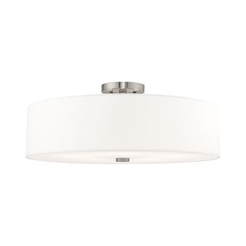 Add style to any room with this elegant semi flush mount. The Livex Lighting Meridian Off White Ceiling Light features a beautiful hand crafted off-white fabric hardback drum shade in a stylish Brushed Nickel.