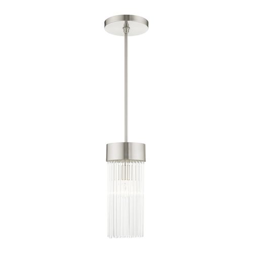 The Norwich single light crystal pendant will become an attention-grabbing feature in your modern home decor. The smooth finish graces the design with elegance and charm, providing a timeless and glamorous quality to any interior. The clear crystal rods give the sconce a sleek and attractive appearance. Choose from Brushed Nickel or Soft Gold finishes.