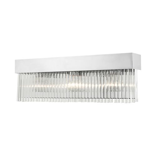 The Norwich ADA three-light crystal sconce will become an attention-grabbing feature in your modern home decor. The smooth finish graces the design with elegance and charm, providing a timeless and glamorous quality to any interior. The clear crystal rods give the sconce a sleek and attractive appearance. Choose from Brushed Nickel or Polished Chrome finishes.