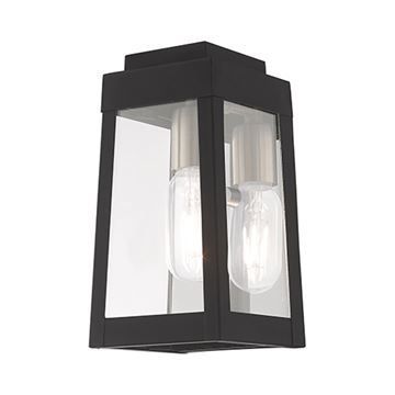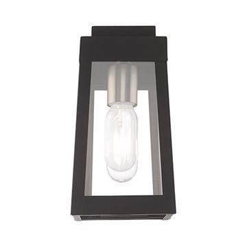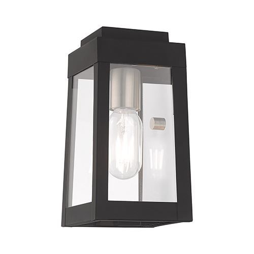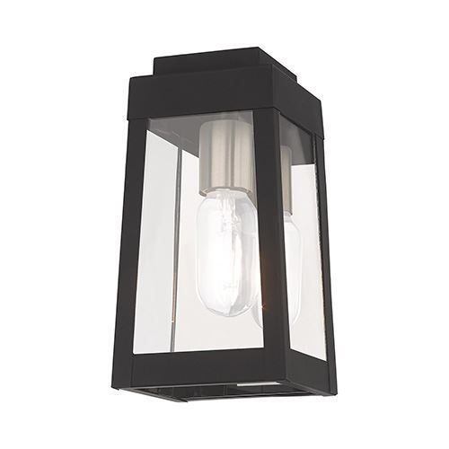 Livex Lighting Oslo 9 1/2 Inch Outdoor Wall Lantern features a tapering solid brass frame with clear glass panels and the bulbs of your choice. Choose from Black, Brushed Nickel, or Satin Brass finishes.