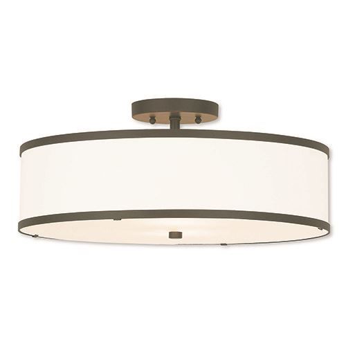 Update your decor with this sleek Livex Lighting Park Ridge 18 Inch Off White Ceiling Mount Light with off-white fabric hardback shade. Choose from Bronze or Brushed Nickel finishes.
