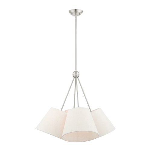 The Prato collection is both modern and versatile. The hand-crafted oatmeal colored fabric hardback shade sets a pleasant mood. The four-light shade cluster adds character to this handsomely styled pendant. Perfect fit for the living room, dining room, kitchen and bedroom. This sleek design is available in Bronze or Brushed Nickel finishes.